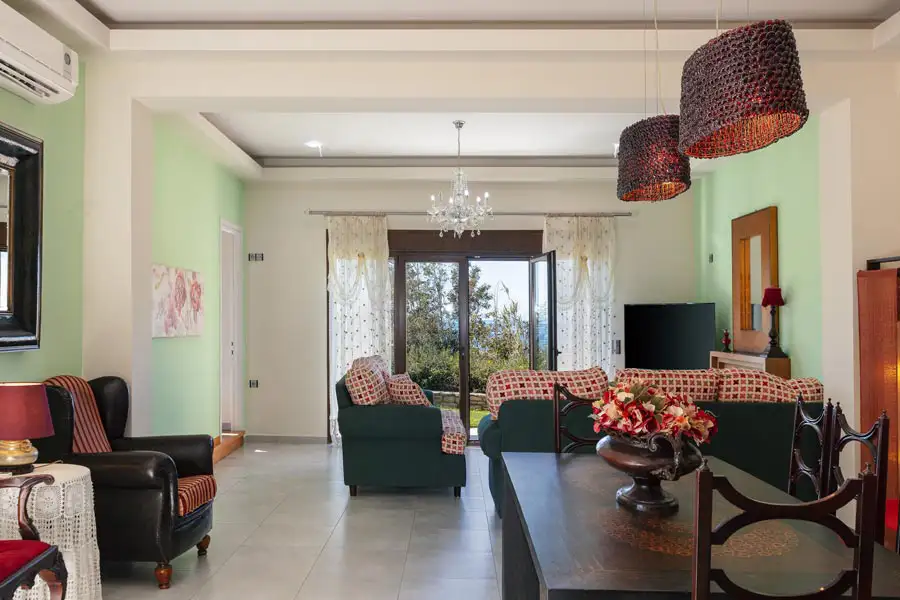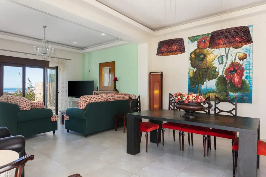 Η βίλα είναι εξοπλισμένη με 4 υπνοδωμάτια, 3 μπάνια, κλινοσκεπάσματα, πετσέτες, τηλεόραση επίπεδης οθόνης με δορυφορικά κανάλια, τραπεζαρία, πλήρως εξοπλισμένη κουζίνα και βεράντα με θέα στη θάλασσα. Μια ιδιωτική είσοδος οδηγεί τους επισκέπτες στη βίλα, όπου μπορούν να απολαύσουν λίγο κρασί ή σαμπάνια και φρούτα. Υπάρχει επίσης καθιστικό και τζάκι.